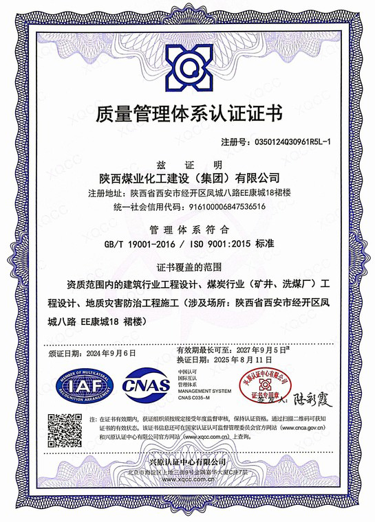 擁有建筑工程施工總承包、礦山工程施工總承包“雙特級”資質和建筑行業甲級、煤炭行業(礦井、選煤廠)專業甲級設計資質;市政公用工程、鋼結構工程、起重設備安裝工程、環保工程、建筑裝修裝飾工程、地基基礎工程、古建筑工程一級承包資質;機電工程、公路工程、冶金工程、鐵路工程、水利水電工程、石油化工工程、電力工程、隧道工程二級承包資質,同時具有特種工程專業承包資質。